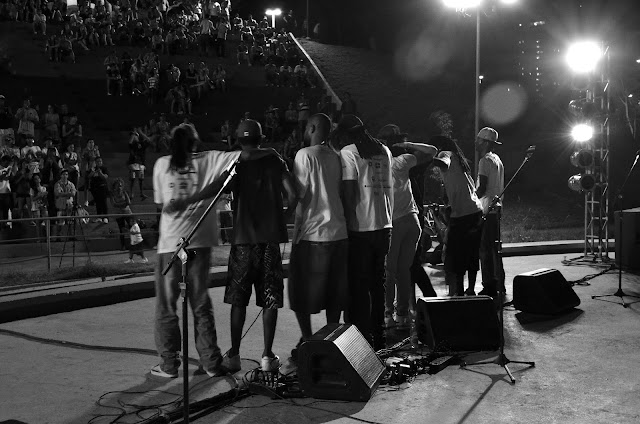 Ao contrário do pequeno espaço que o Ponto de Cultura – Acesso Hip Hop, em que Felipe Canela – Zica Zuka abriu para a oficina de beatmaker, o parque Vitória Régia parecia espaçoso. Parecia. O espaço foi ocupado em grande parte e o som pôde rolar de boa, e o Coruja pôde mostrar também qual seu público, sua cara e suas idéias. Ocupar o espaço, pensar junto e integrar as várias formas de expressão artística compuseram a teia de relações que o Festival foi capaz de criar no início da noite bauruense e que Coruja BC1 pôde trabalhar como um dos protagonistas.